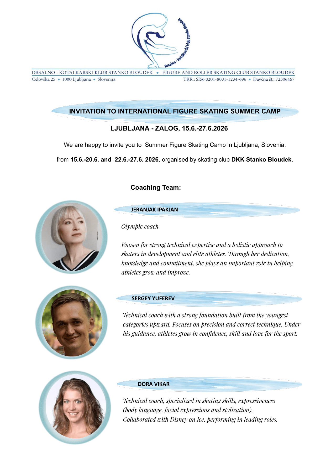 Mednarodni drsalni kamp / International skating camp Ljubljana – Zalog 2026